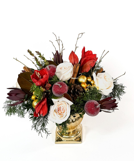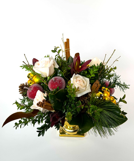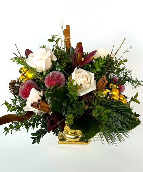 Evergeens, apples, cones, and warming spice gathered and laid by the comfort of the hearth through the long New England winter...