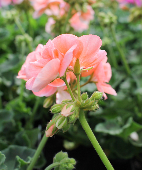Our geraniums are grown right here in our greenhouses. Fine for a sunny location, these premium quality plants will bloom all summer with proper care.