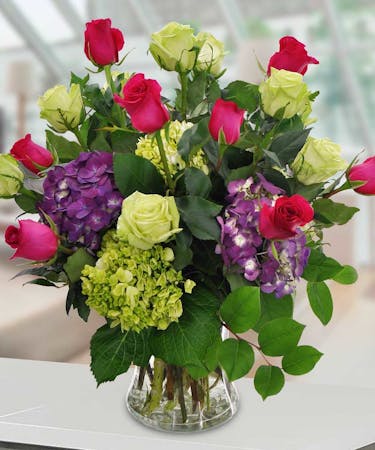 Roses & Hydrangea Vase - Same-day Delivery Danvers, MA - Currans Flowers