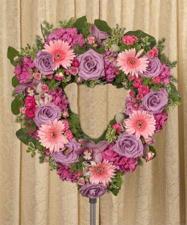 The Soft Colored Open Heart is an impressive sympathy design of pastel roses, gerbera daisies, orchids, and more that conveys your love perfectly.